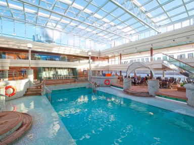 оздоровительный центр, театр на 1250 мест, казино, кинотеатр, несколько ресторанов и три плавательных бассейна.